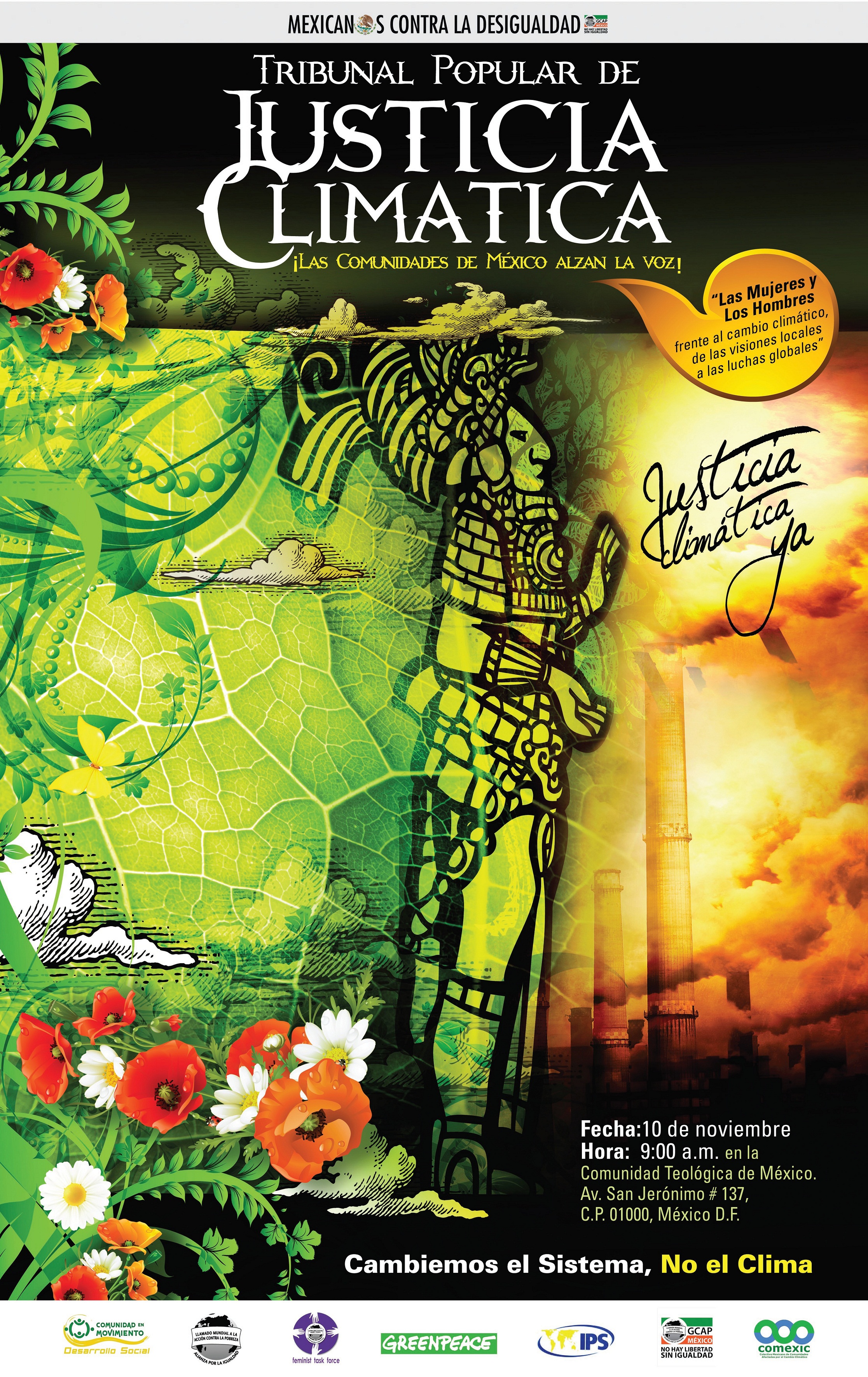 The women’s tribunal is organized by Mexican@s Against Inequality and for a Community in Movement, in alliance with the Feminist Task Force (FTF) and the Global Call to Action against Poverty (GCAP), along with Greeenpeace International and Inter Press Service (IPS) as part of a global mobilization of Women’s Tribunals on Gender and Climate Justice taking place in 15 countries around the world. In Latin America, Mexico, along with Peru and El Salvador, will hold a peoples’ tribunal.