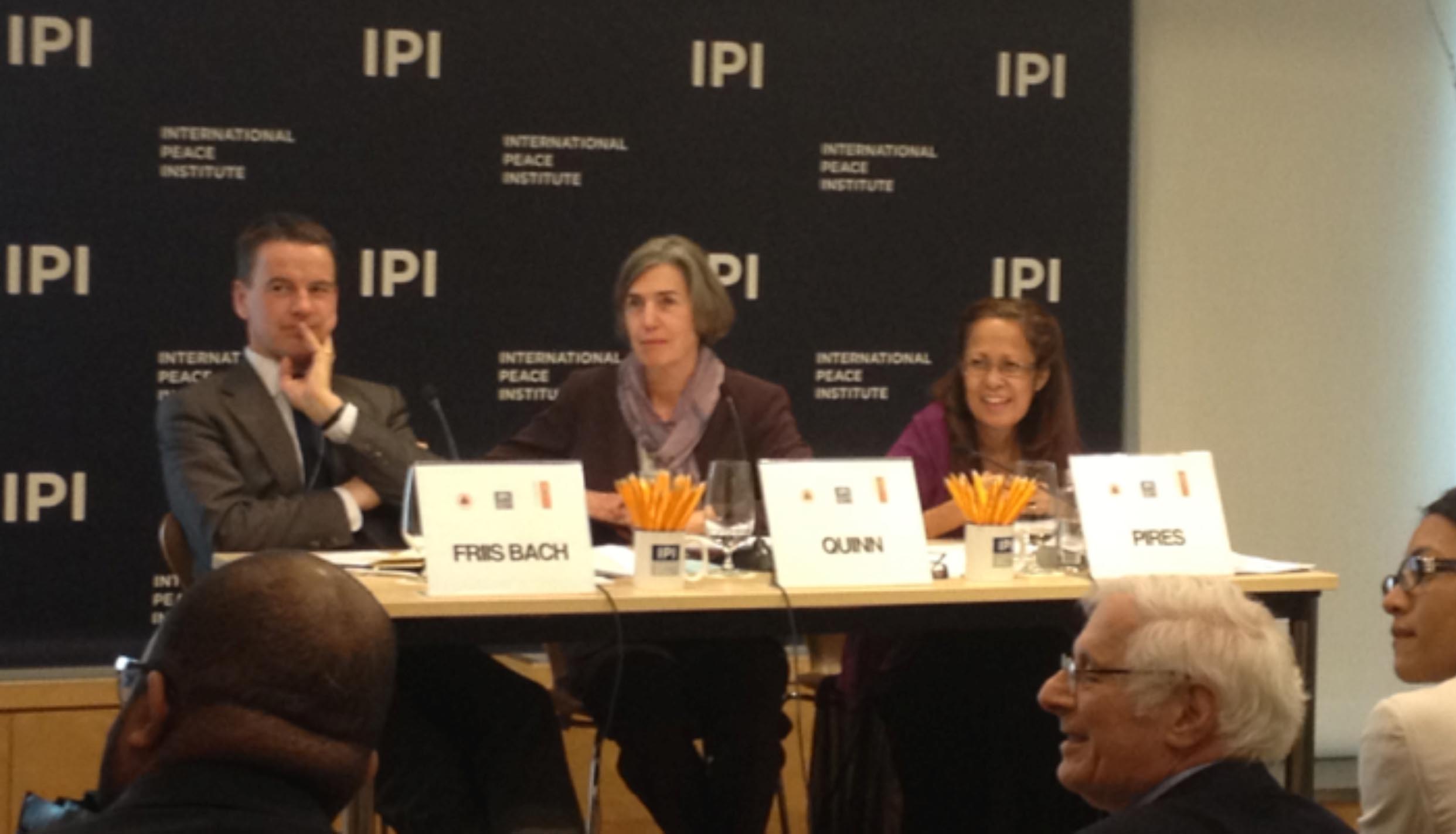 Ministers Emelia Pires, Timor-Leste’s Minister of Finance and member of the High Level Panel of Eminent Persons advising the United Nations (UN) on the Post 2015 global development agenda, and Mr. Christian Friis Bach, the Danish Minister for Development and Cooperation who co-hosted a meeting of the Inequalities Consultation on the Post 2015 process, spoke on the latest developments regarding fragile states in the post 2015 development process last Monday, April 22, at the International Peace Institute in the UN Church Center.
