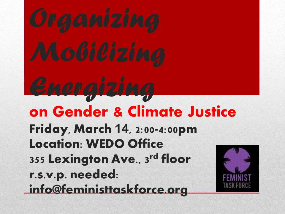 Follow-up Strategy Session to the Nexus of Gender, Poverty and Climate Justice – Organizing, Mobilizing, Energizing on Gender and Climate Justice in a Post 2015 Framework