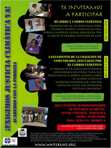The FTF collaborated with GCAP Mexico, GCAP LAC, and GCAP in organizing the First Forum on Communities Affected by Climate Change in Mexico City, November 29, in the lead-up to the COP16 Cancún, Mexico. Spearheading by GCAP Mexico, the Forum was the first organized since the creation of the Coalition of Communities Affected by Climate Change in Copenhagen in 2009 and featured many local women whose lives and livelihoods had been impacted by a changing climate and environment. FTF member, Rosa Lizarde, presented on the work of the women’s tribunals on climate justice and showed the video, “7 Countries, 3 Continents, 1 Call” in Spanish about the seven women’s tribunals organized in 2009. Partner women’s organizations presented on how climate change has impacted their communities.