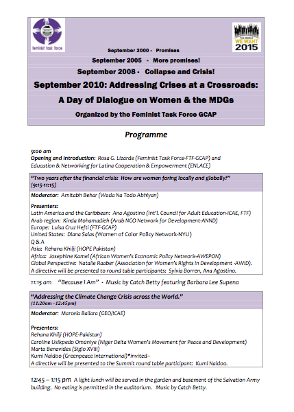 “Organizing for change: Women’s Tribunals as Civil Society Advocacy”. Side event at the United Nations Rio+20 Commission on Sustainable Development in June of 2012.
